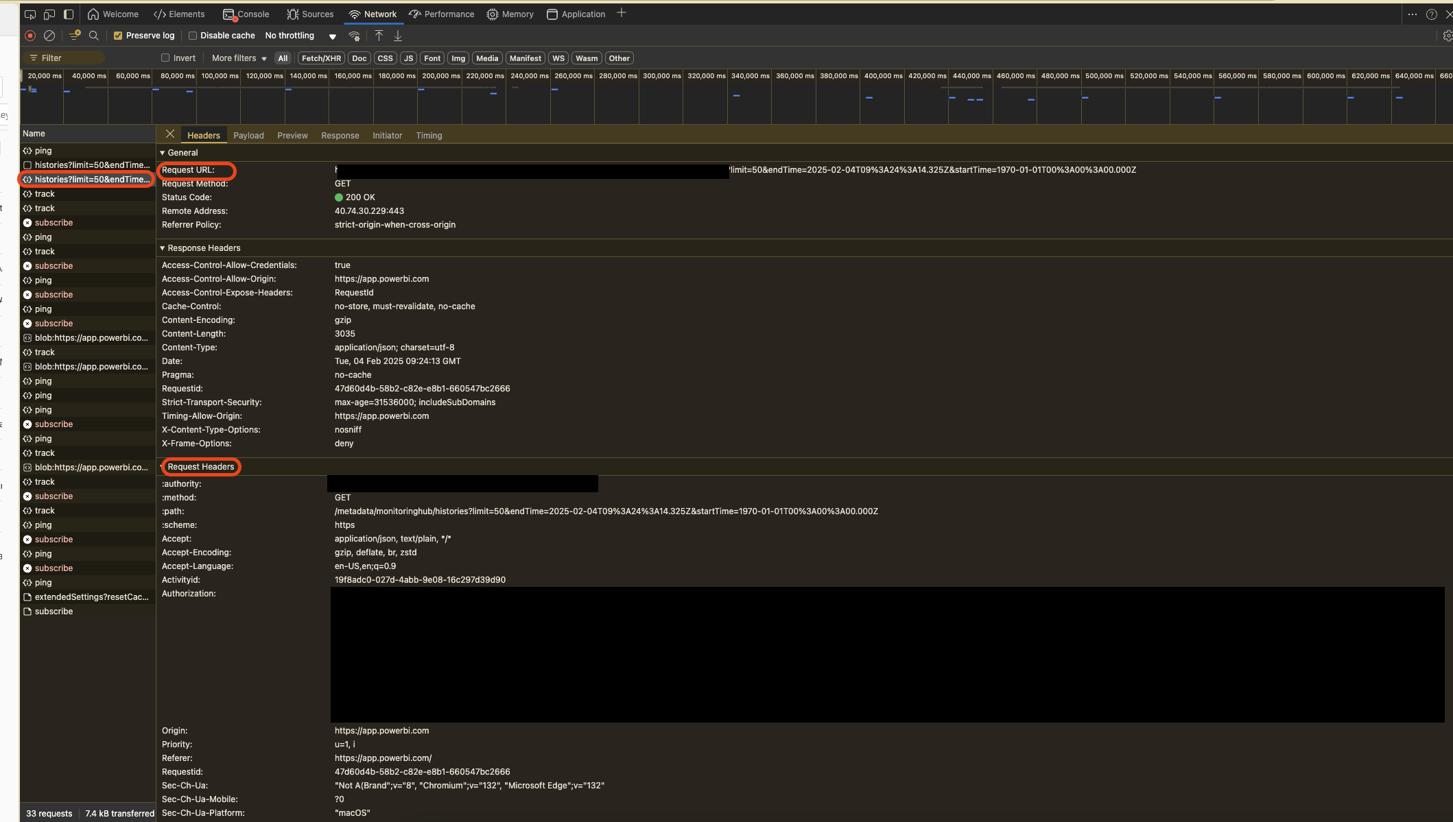 The highlighted sections show the key information you’ll need to construct your own REST API call to the same endpoint. This means you can access exactly the same data that Monitoring Hub displays—programmatically!